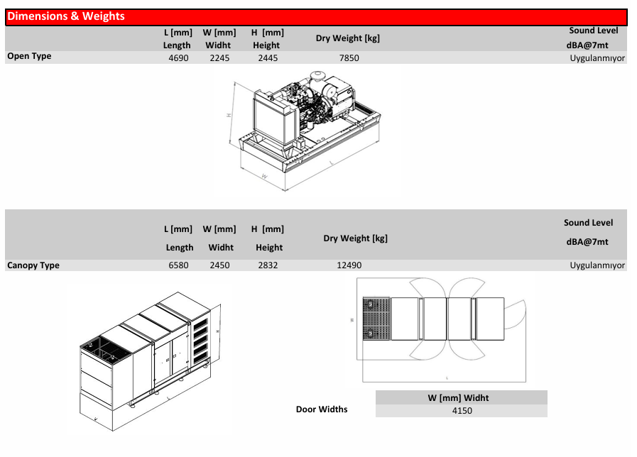 Cooling Method Water Cooled (water + %50 antifreeze)