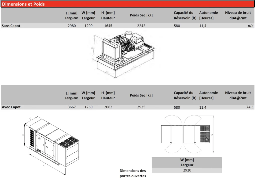 Le groupe électrogène diesel ARK-B 265 L5, conçu par Arken Generator, délivre 240 kVA en puissance prime et 265 kVA en puissance de secours, équipé du moteur Baudouin 6M16G250/5 à 6 cylindres, turbocompressé, et de l’alternateur LINZ PRO28S C/4. Offrant un rendement de 93,8 %, une régulation de tension de ±1 % et un THD < 3 %, il garantit une stabilité et une fiabilité exceptionnelles. Fonctionnant à 74,3 dBA, ce groupe électrogène combine un fonctionnement silencieux avec une endurance supérieure sous fortes charges. Entièrement conforme aux normes ISO 8528 et ISO 3046, et soutenu par une garantie de 2 ans / 1000 heures, il se distingue comme un système énergétique robuste et performant pour les environnements exigeants.