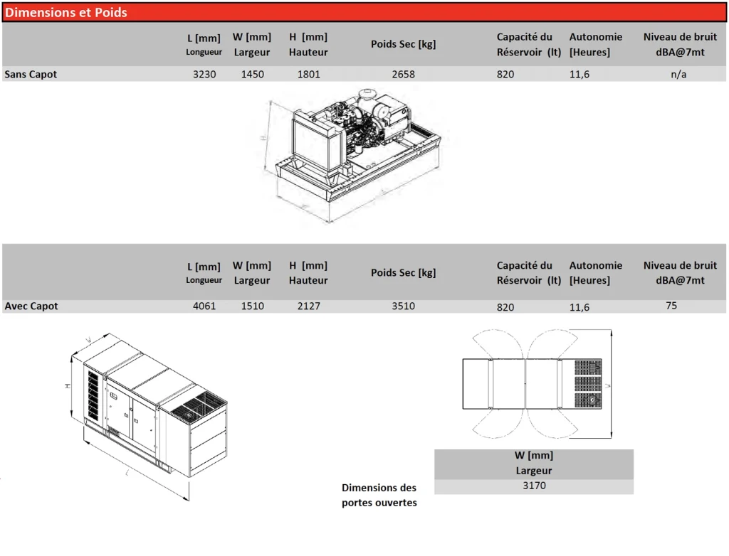 Le groupe électrogène diesel ARK-B 350 L5, conçu par Arken Generator, délivre 325 kVA en puissance prime et 350 kVA en puissance de secours, destiné aux applications industrielles et commerciales intensives. Équipé du moteur Baudouin 6M16G350/5 et de l’alternateur LINZ PRO28M E/4, il offre une haute efficacité, une faible consommation de carburant et une excellente stabilité de tension sous des charges variables. Doté d’un régulateur de tension électronique AVR, d’une régulation de tension de ±1 % et d’un THD < 4 %, il garantit une alimentation électrique propre et constante. Construit conformément aux normes ISO 8528 et ISO 3046, le ARK-B 350 L5 fonctionne silencieusement à 75 dBA, dispose d’un capot résistant à la corrosion et bénéficie d’une garantie de 2 ans / 1000 heures, en faisant une solution robuste pour les besoins énergétiques continus et de secours.