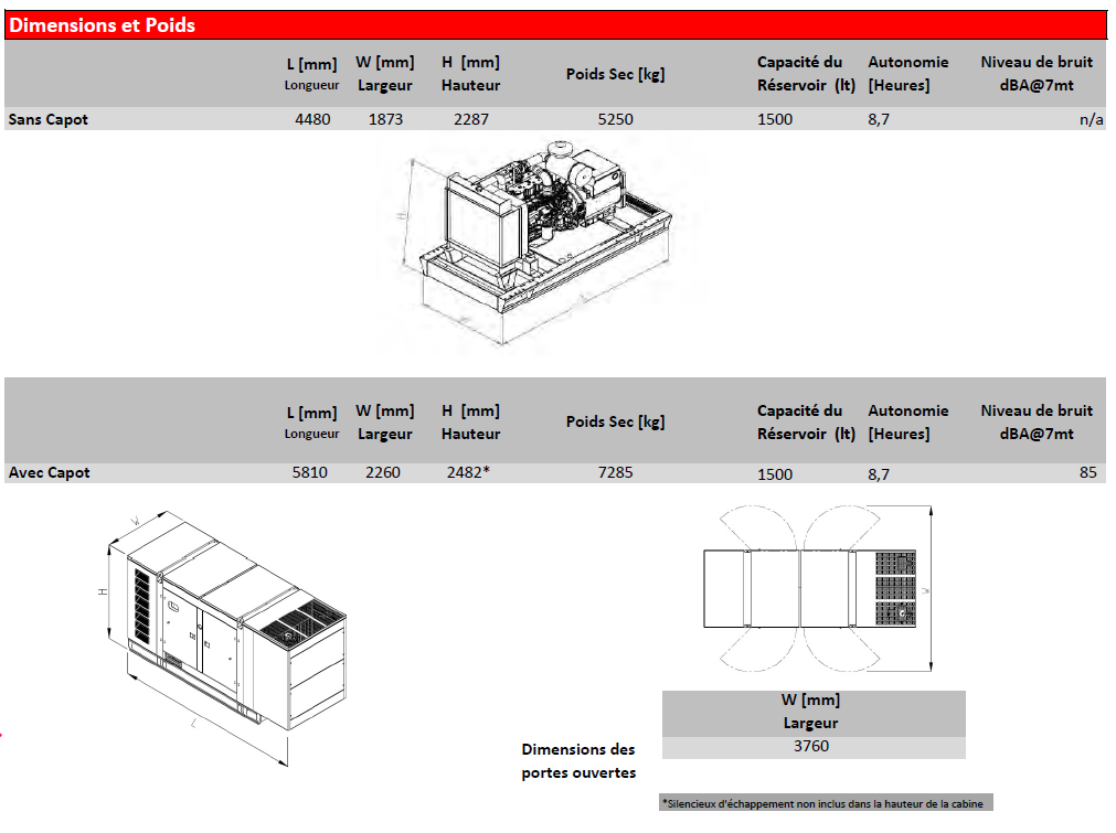 Conforme aux normes ISO 8528, silencieux à 83 dBA et garanti 1 an / 1000 heures, il constitue une solution robuste, durable et efficace pour une production d’énergie continue ou de secours.
