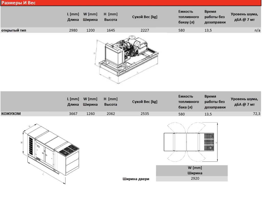 Соответствует стандартам ISO 8528 / ISO 3046, уровень шума 72,3 дБА, гарантия 2 года / 1000 часов.