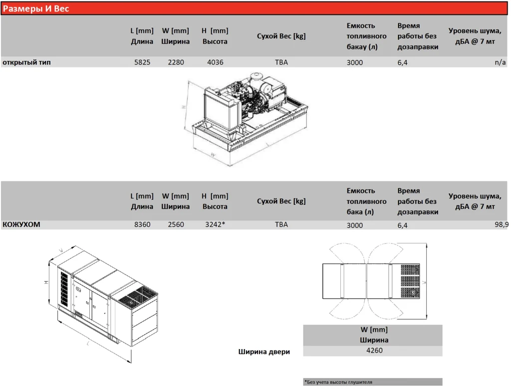 Генератор ARK-P 2500 S5 оснащён двигателем Perkins 4016-61TRG3 и обеспечивает 2250 кВА (prime) и 2500 кВА (standby).
