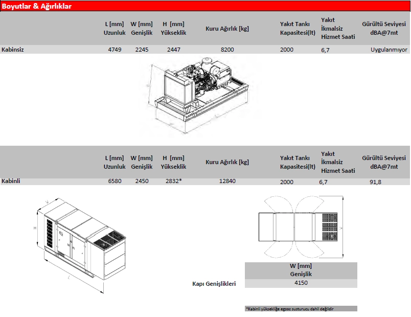 Maksimum Egzoz Gazı Çıkış Sıcaklığı [°C]≤550
