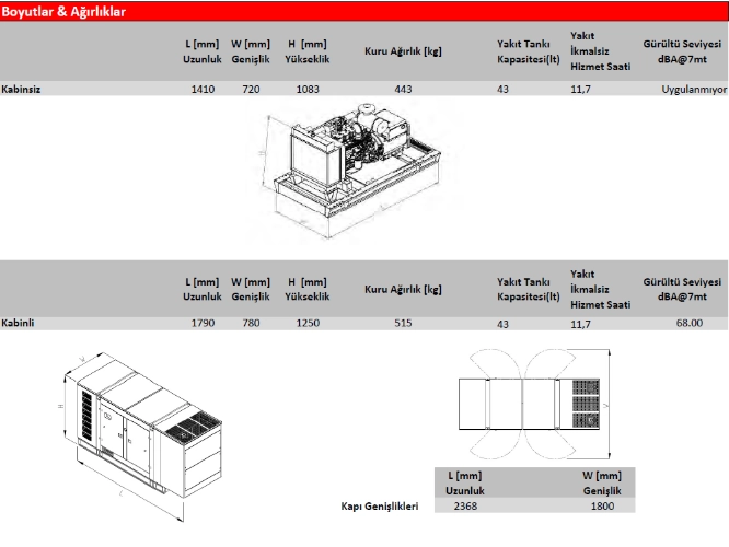 | Standart Akü Voltajı VDC | 12VDC |